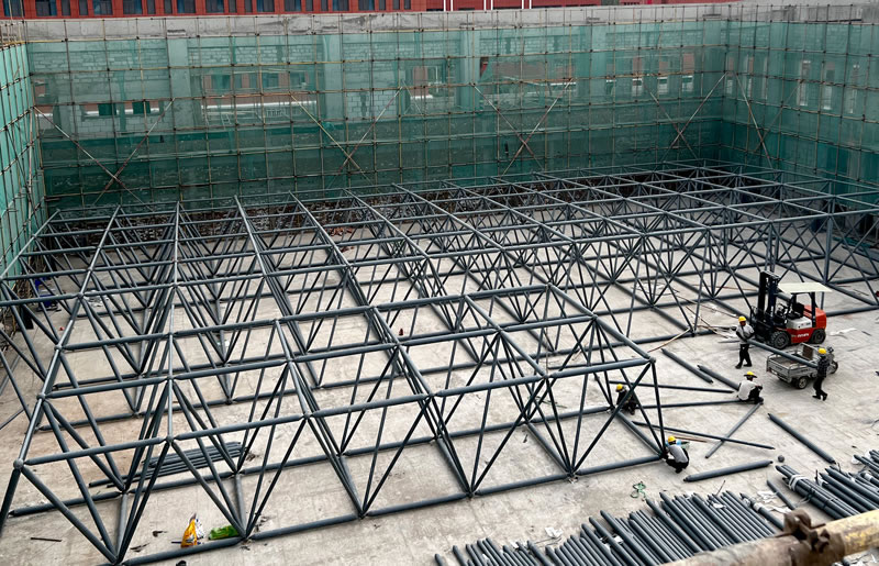· 适用性:适用于跨越现有设施(如铁路、厂房)、施工场地狭窄,或需要分段施工的超长网架结构。